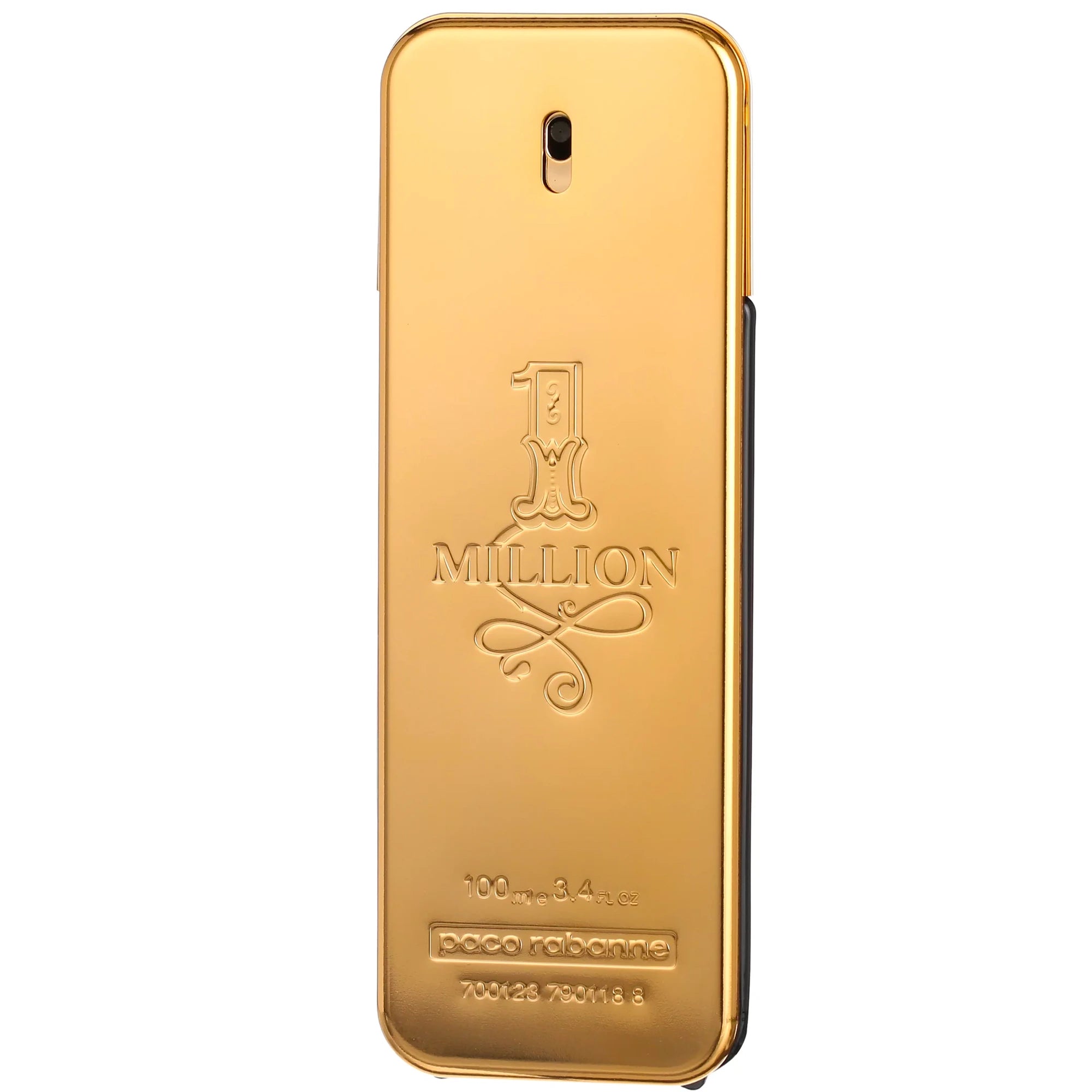 Inspired by Rabanne's metallic fashions,1 Million was in particular a 1967 dress worn by singer Fran̤oise Hardy. The fragrance was developed by perfumers Olivier Pescheux,Christophe Raynaud and Michel Girard,and features notes of fragrance include grapefruit,rose,cinnamon,spice notes,mint,blood orange,blond leather,white woods,amber and patchouli. The 1 million bottle is modelled after a gold ingot.