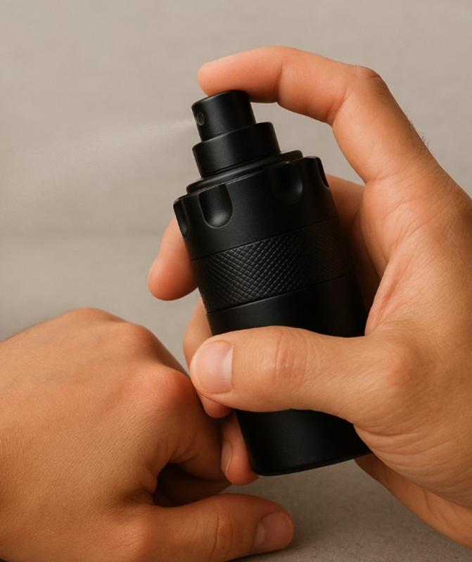 - Spray the men's fragrance onto pulse points, including the wrists and neck, wherever you feel a heartbeat