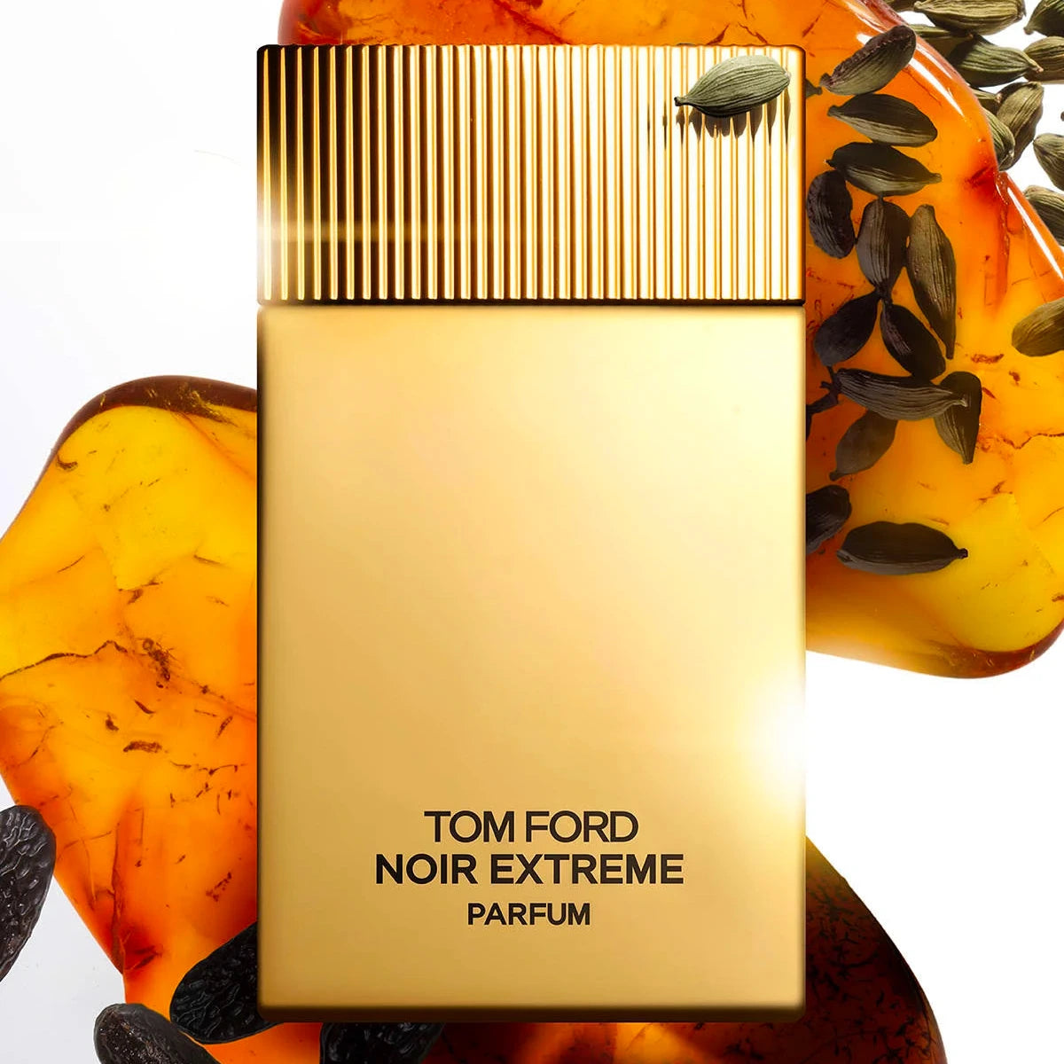 This Tom Ford Noir Extreme 3.4 oz Parfum for men is an opulent blend of spices, woods, and amber. Rich notes of cardamom, Shimoga ginger, tonka bean, and guaiac wood envelop you in a captivating scent. Amber and sandalwood create a creamy yet woody finish. Made in Switzerland.